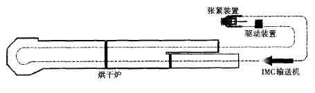 IMC(反向單軌)輸送機是應用于汽車涂裝生產線烘干爐系統(tǒng)的一種新型地面輸送設備,主要由軌道、鏈條、支撐小車、輸送臺車和前/后小車等組成。IMC輸送機的運動原理非常簡單,即由驅動電機裝置驅動模鍛可拆鏈條帶動固定在鏈條上的前、后小車運行,從而帶動輸送臺車及固定于輸送臺車上的滑撬工件前進,以完成烘干輸送任務。該輸送機與傳統(tǒng)的高溫升降機+地面雙鏈的輸送方式相比具有很多優(yōu)點,如布置靈活、簡單,自動化程度高,并可與滑撬之間實現(xiàn)自動交接和等待等;特別是對于u型烘干爐而言,IMC輸送機可以通過連續(xù)彎軌實現(xiàn)烘干爐內部與噴漆室室體之間高差的連續(xù)過渡,避免使用升降機存在的成本高和節(jié)拍問題;另外,IMC輸送機維修方便、設備故障率也更低。